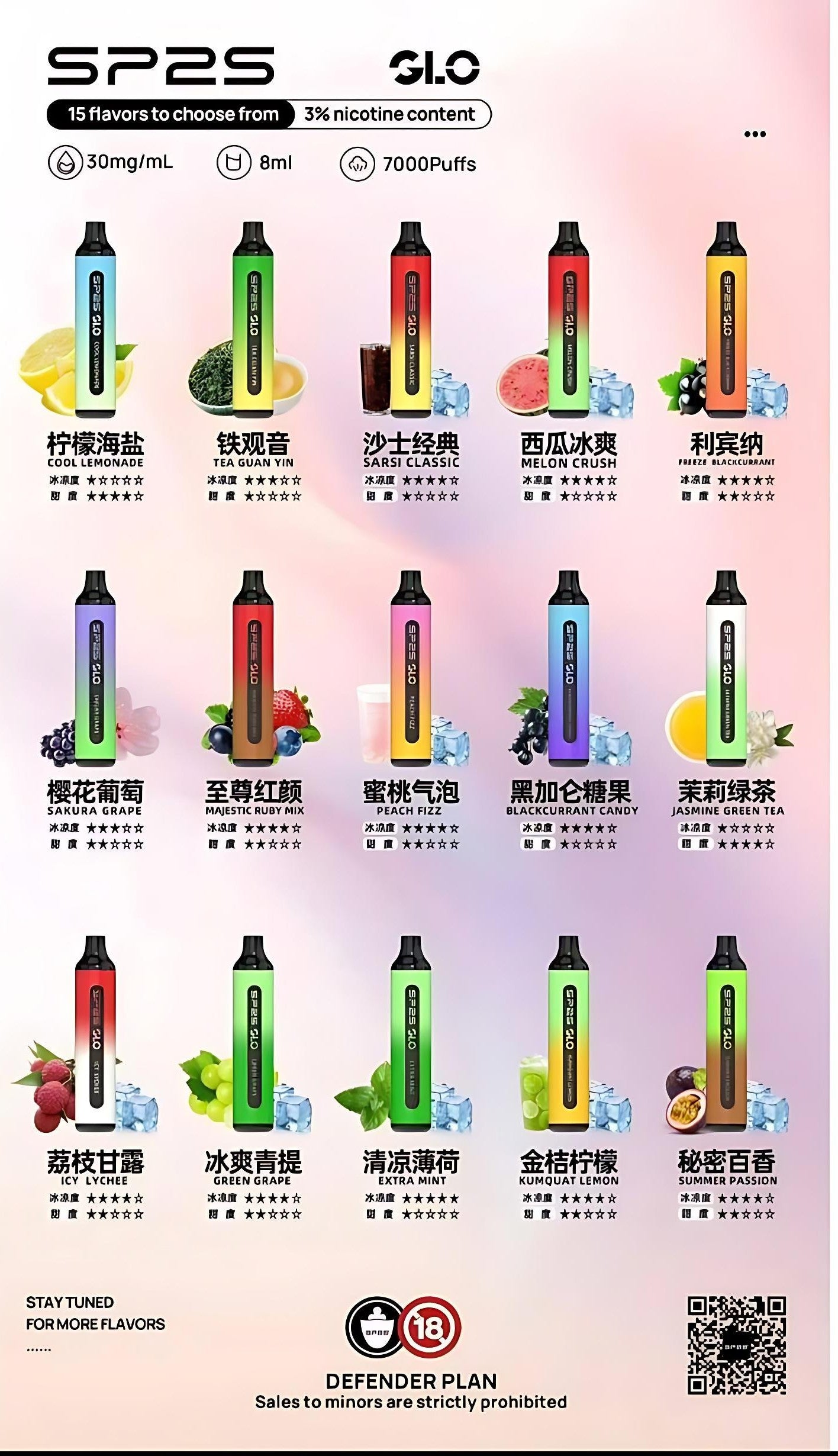 SP2S GLO 7000 Puffs 一次性電子菸|7000口超長續航、8ml大容量、3%尼古丁濃度|15款冰涼果香口味任選,支援Type-C快充,台灣現貨出貨中。